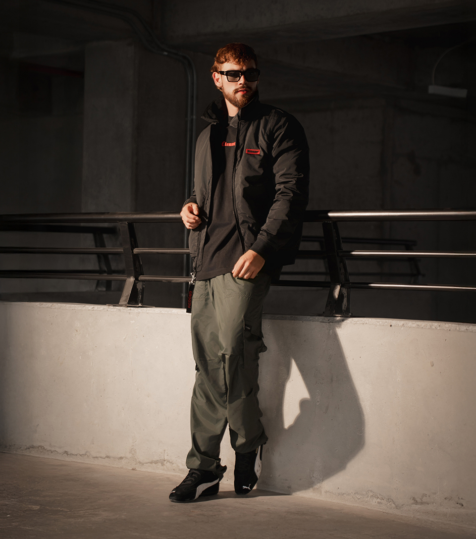 El look Motion Frame fusiona dinamismo y solidez con una estética urbana de inspiración industrial. La chaqueta bomber BREND y el jogger rompevientos EMILIO crean una silueta técnica y funcional, mientras la camiseta CLEMONT aporta equilibrio visual. Las gafas MONASTERY y los tenis PUMA Speedcat OG completan un outfit pensado para moverse con estilo y actitud.