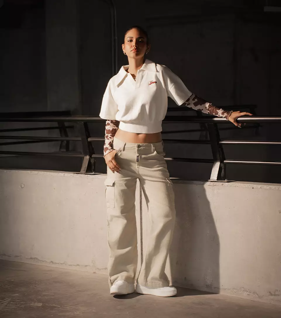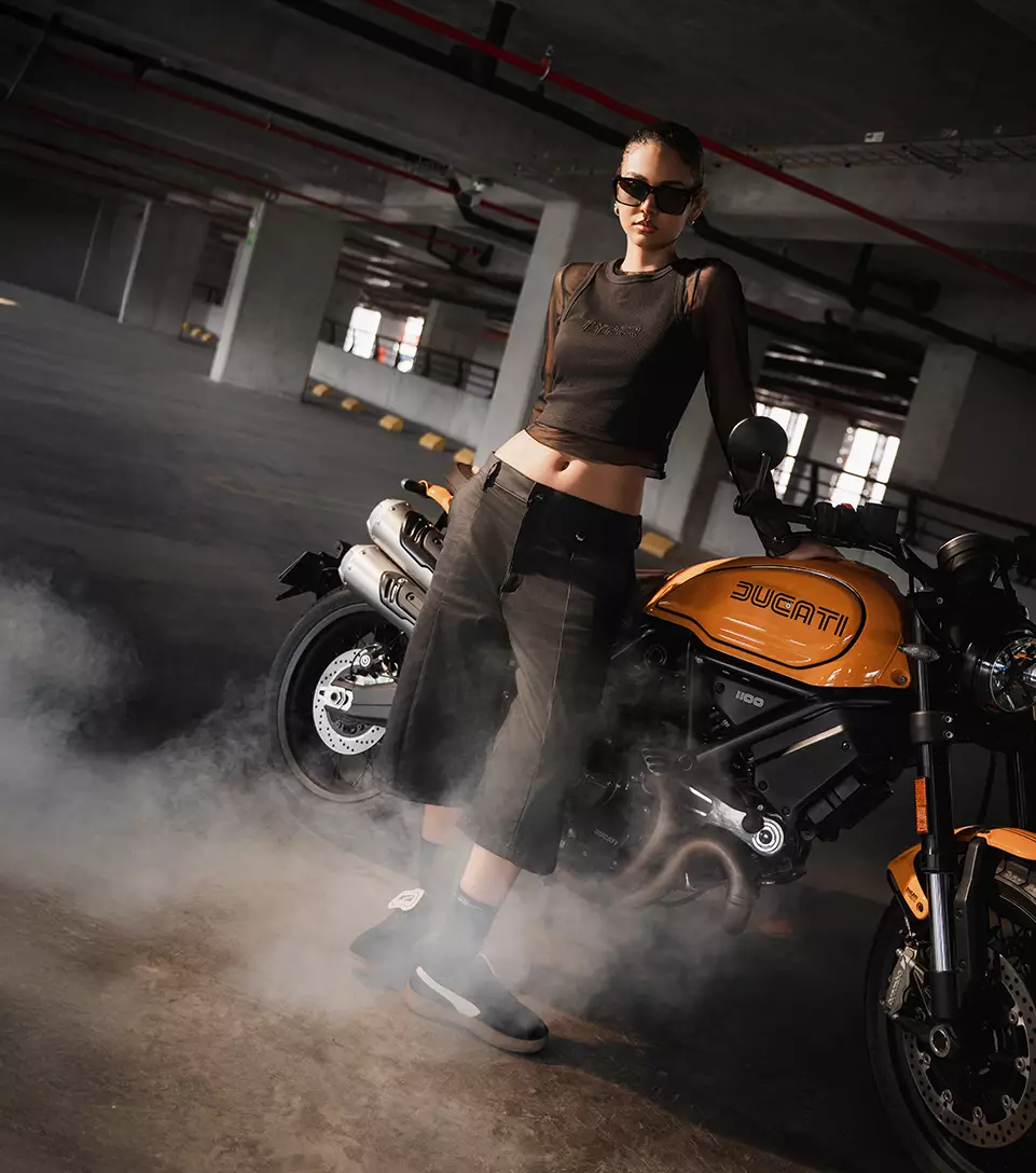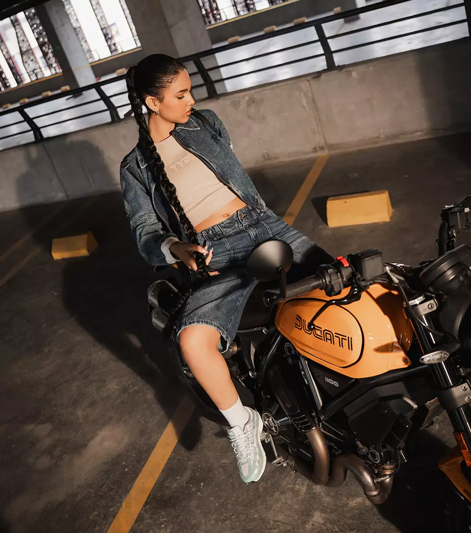 La moda baja al parqueadero y aquí vemos el concreto, motos y luces duras como escenario. Un espacio crudo, sin filtro, donde el estilo callejero toma forma real. Aquí la ropa no es solo prenda, es actitud y presencia en el territorio urbano.