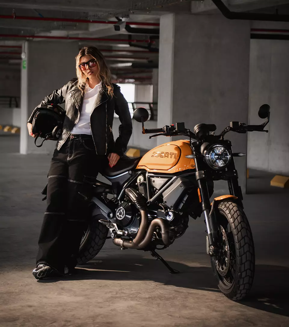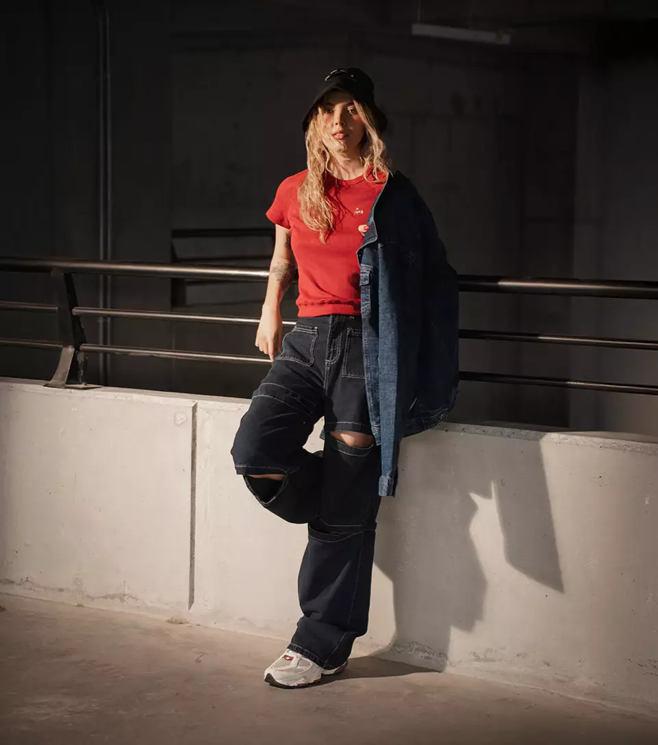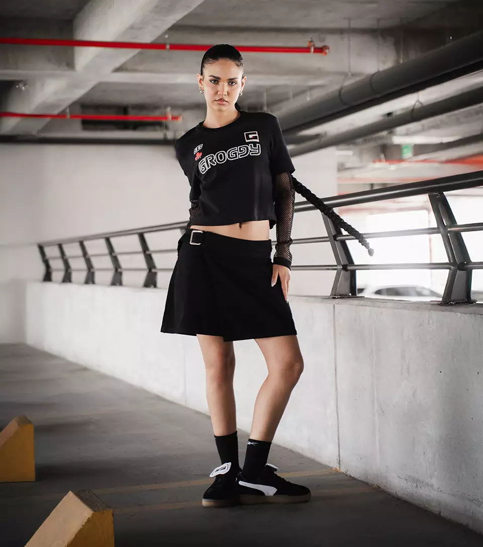 La moda baja al parqueadero y aquí vemos el concreto, motos y luces duras como escenario. Un espacio crudo, sin filtro, donde el estilo callejero toma forma real. Aquí la ropa no es solo prenda, es actitud y presencia en el territorio urbano.